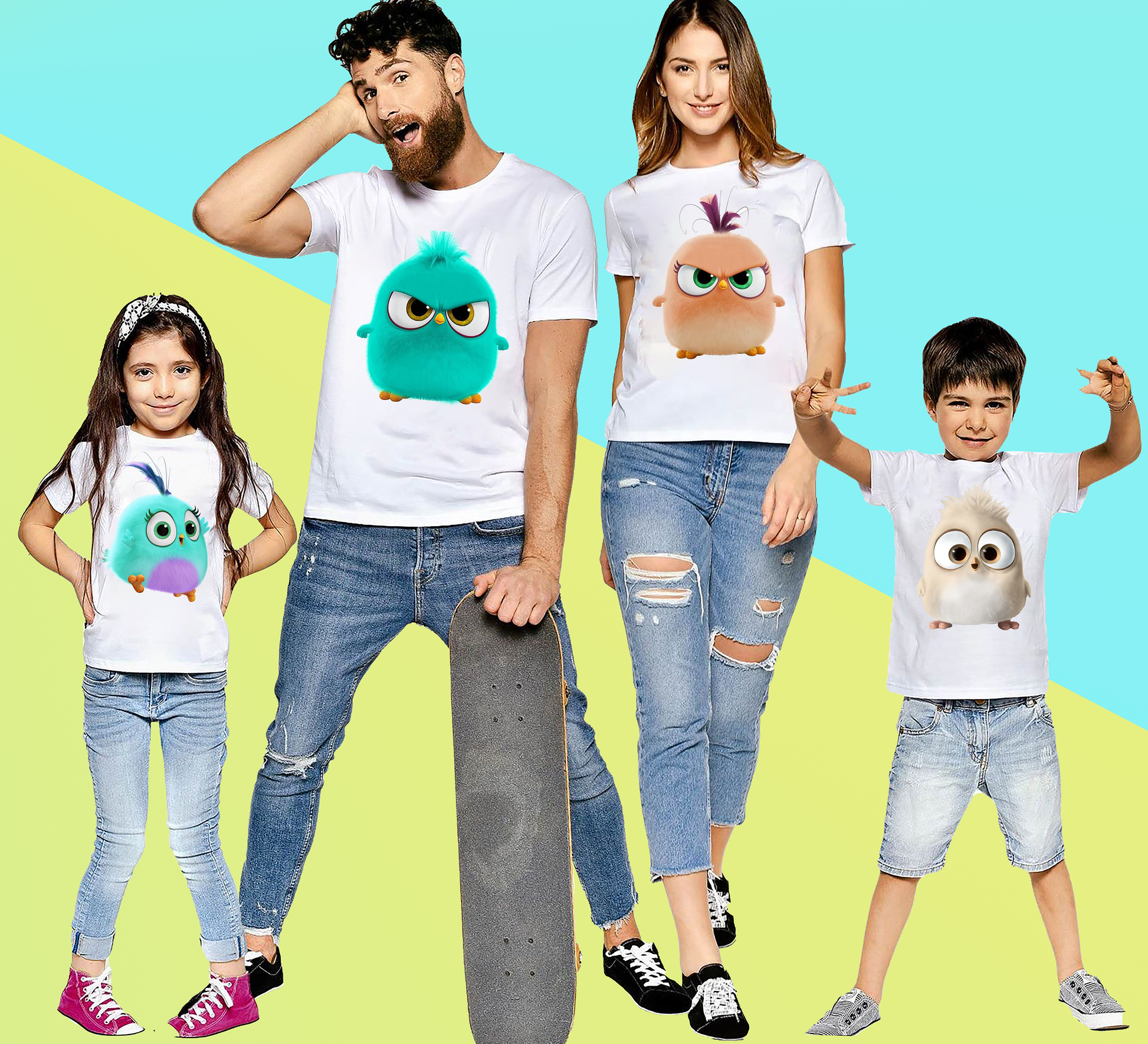 Funny Angry Birds Print Graphic Family Tshirt (Pack Of 4)