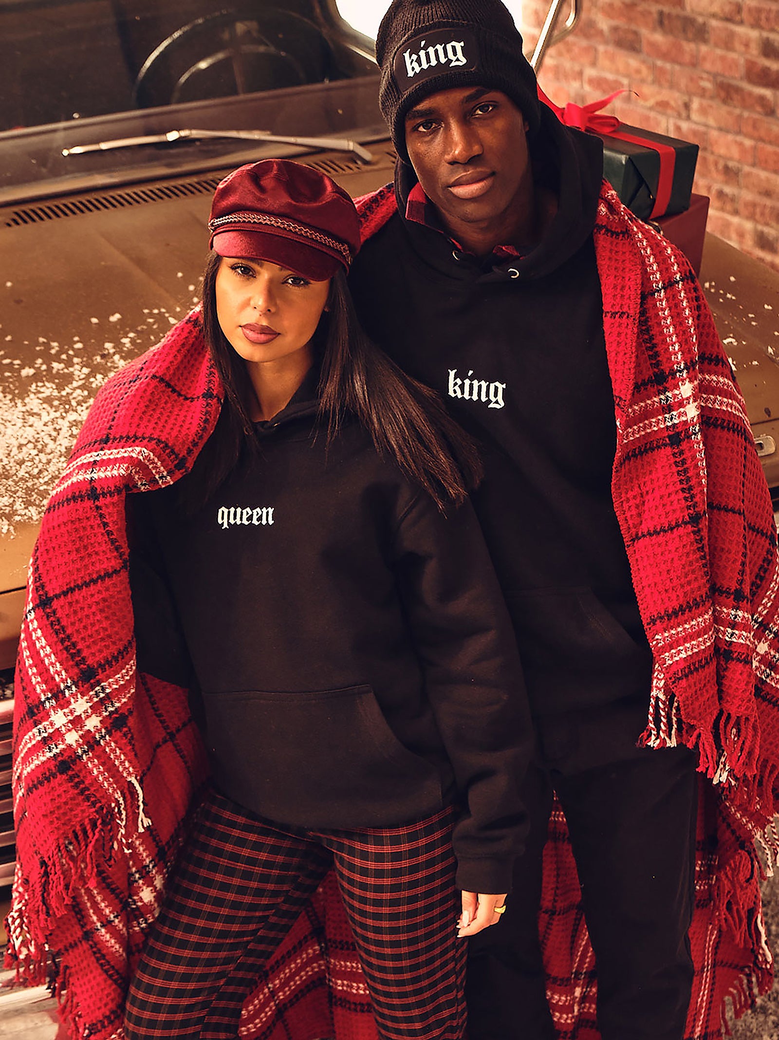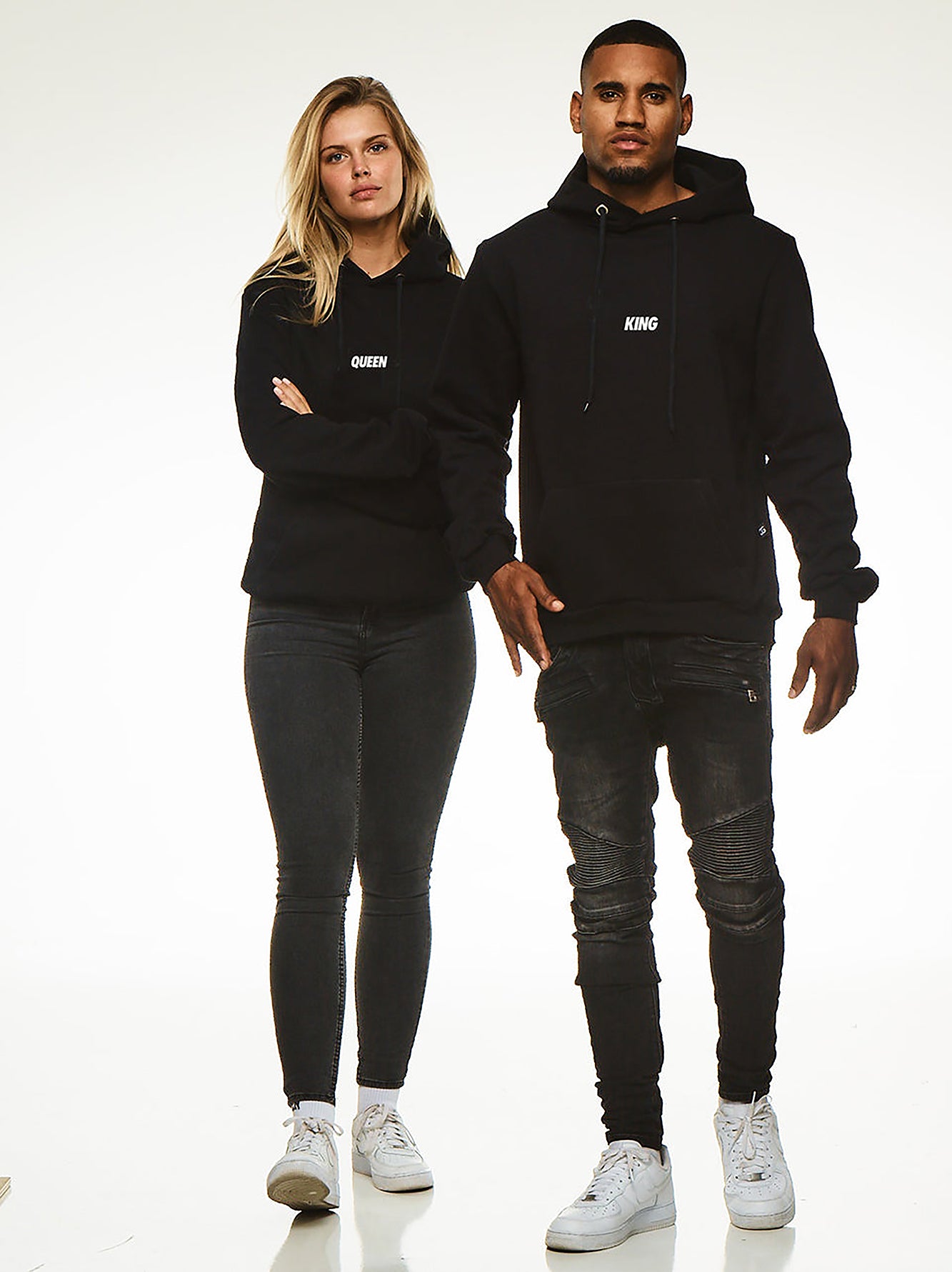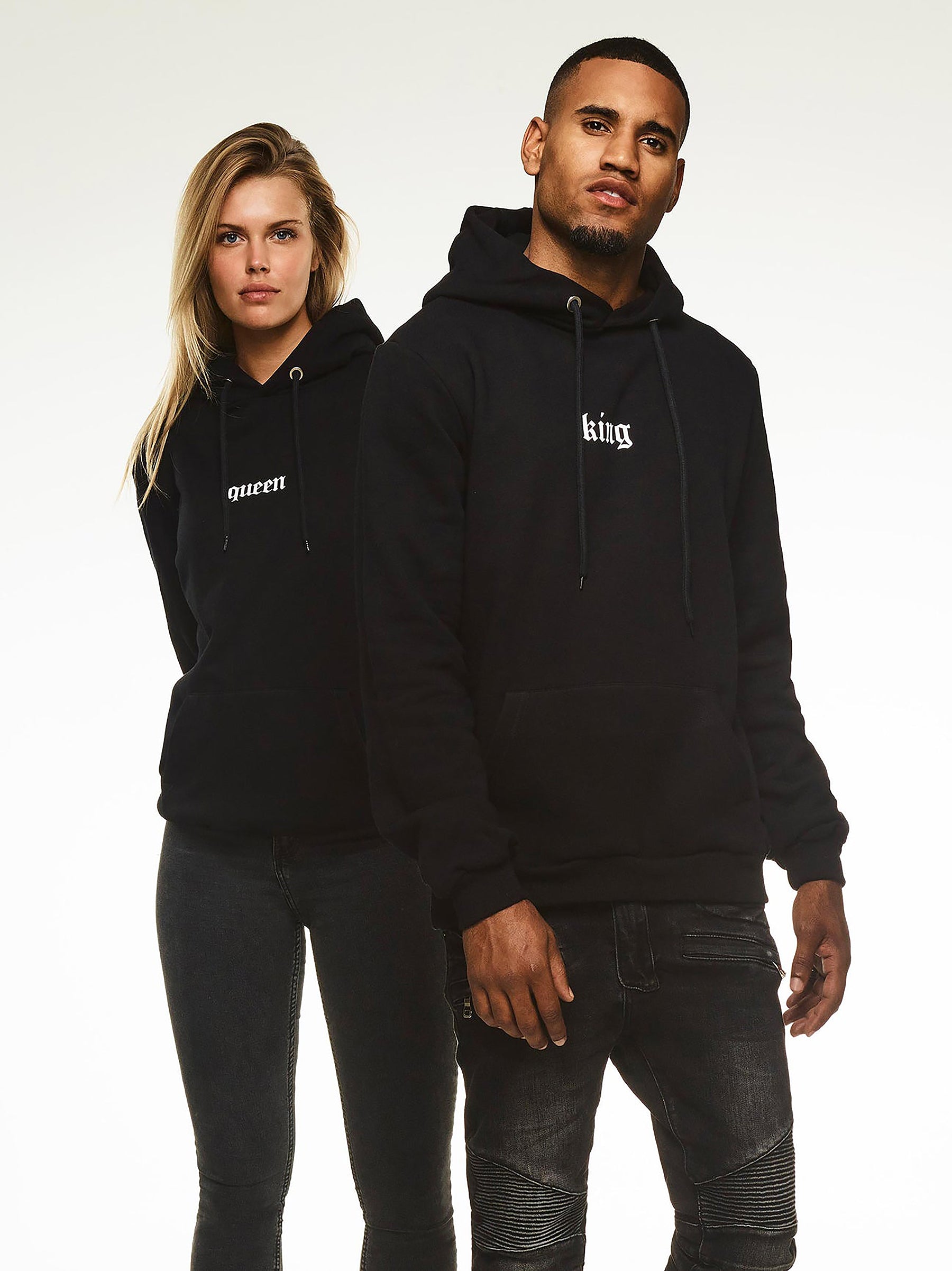 King and Queen Couple Print Black Hoodie