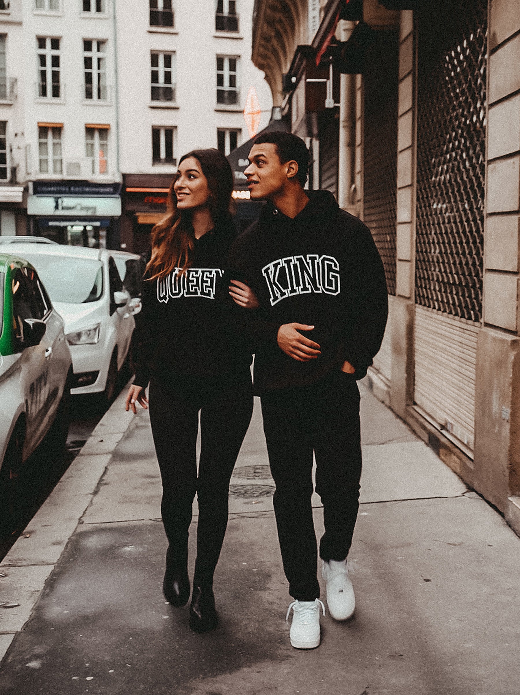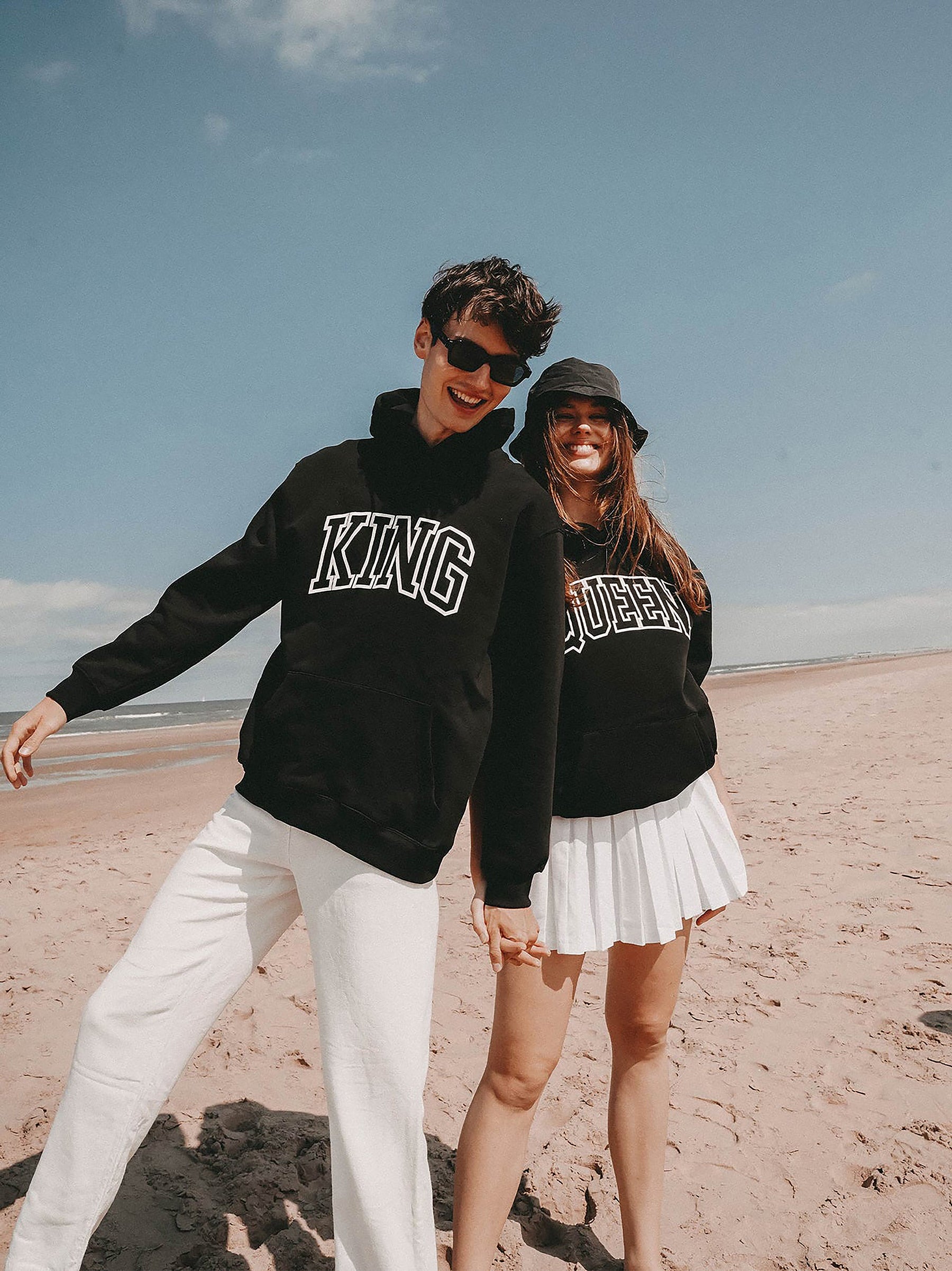 King and Queen Print Matching Couple Black Hoodie