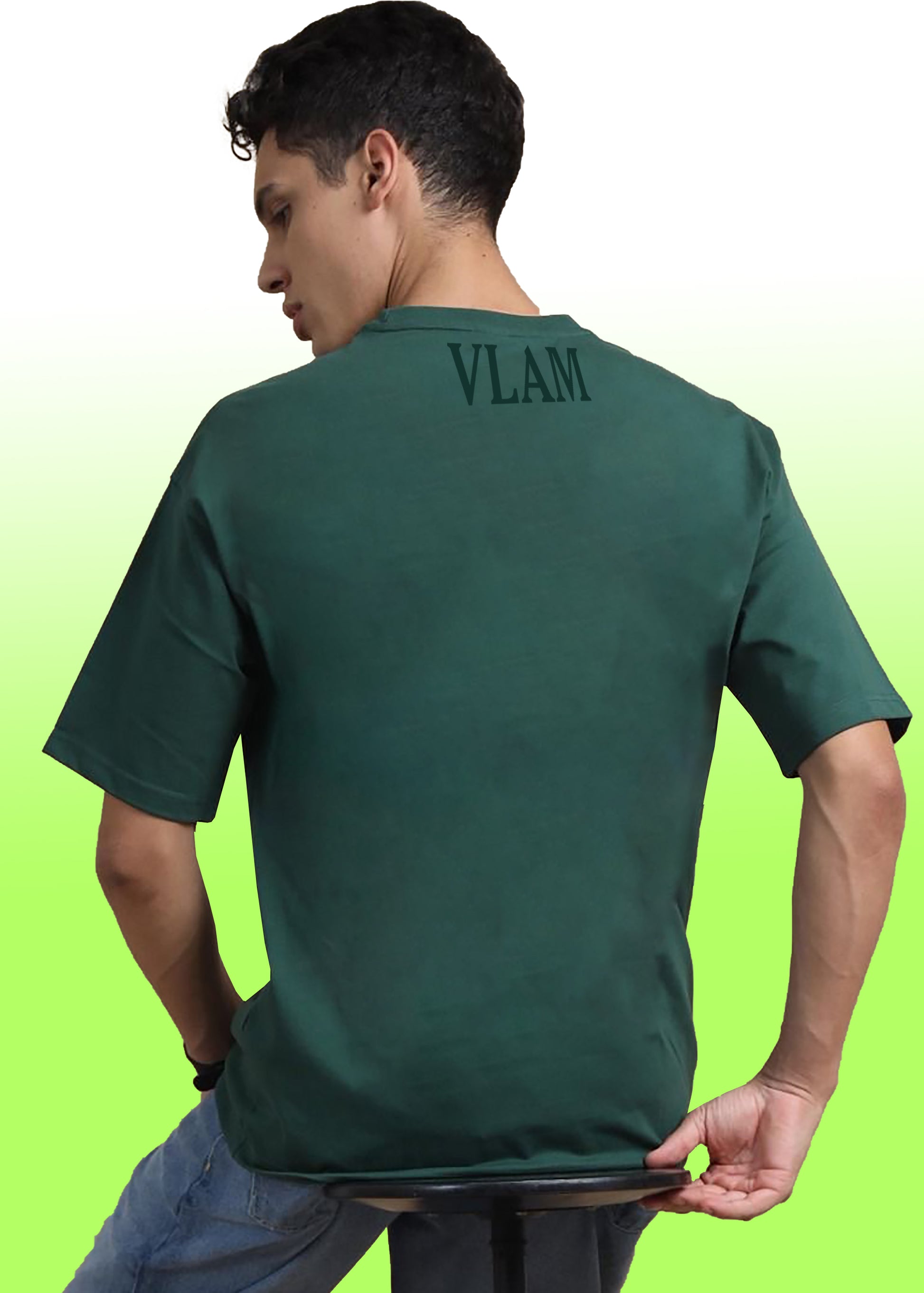 VLAM Regular Fit Bottle Green Solid Tshirt