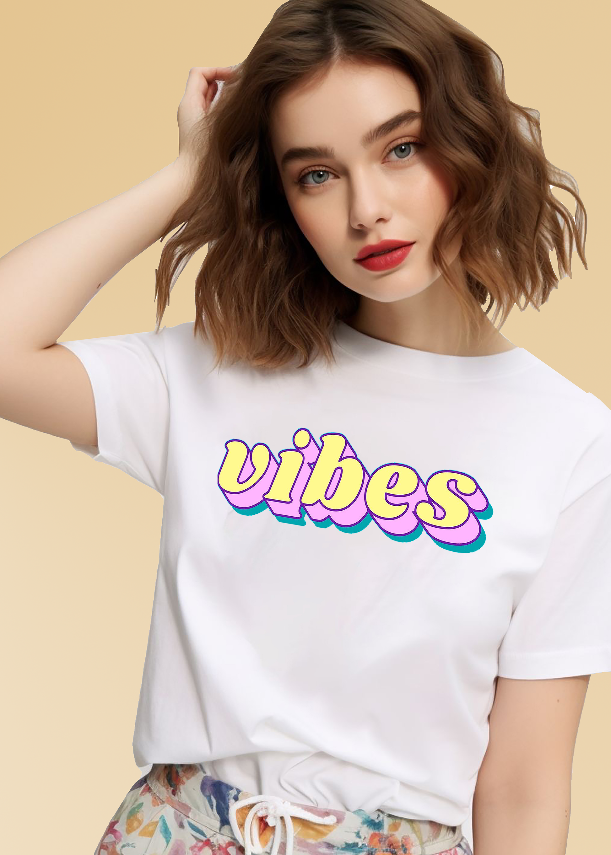 VLAM Vibes Print Colorful Women Tshirt