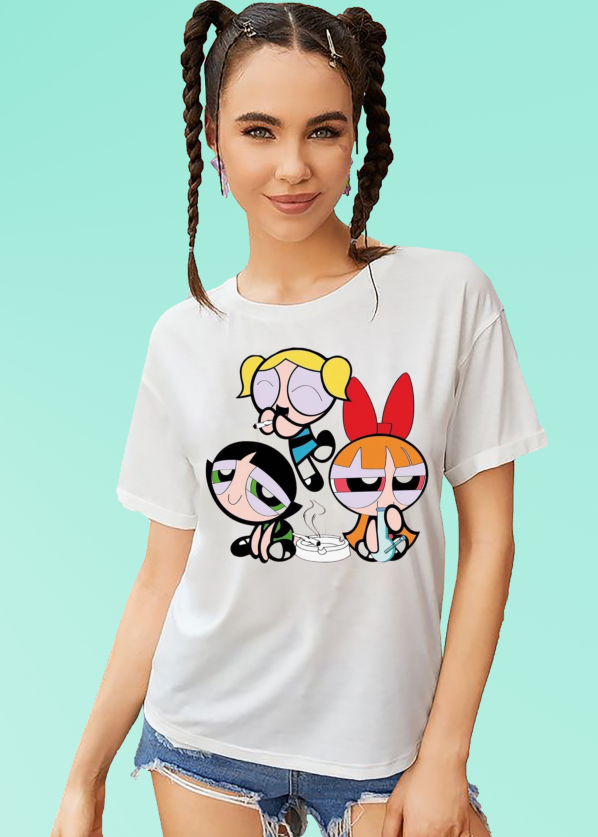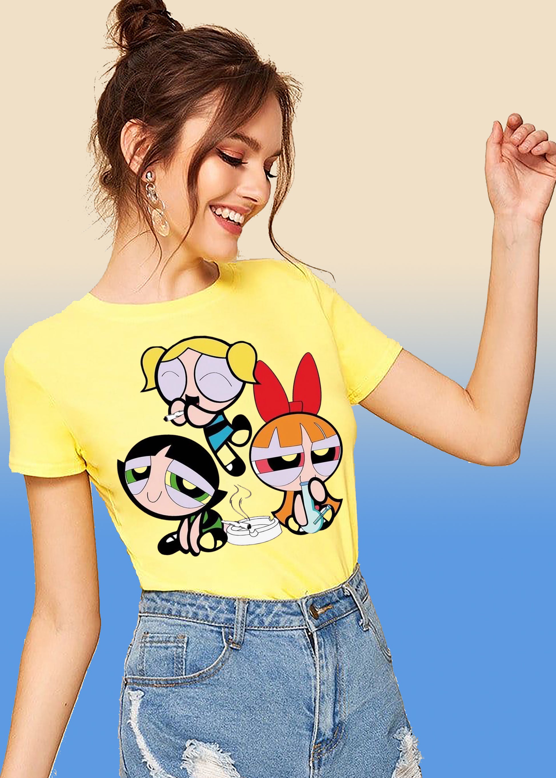 VLAM Womens Dope Powerpuff Cartoon Tshirt