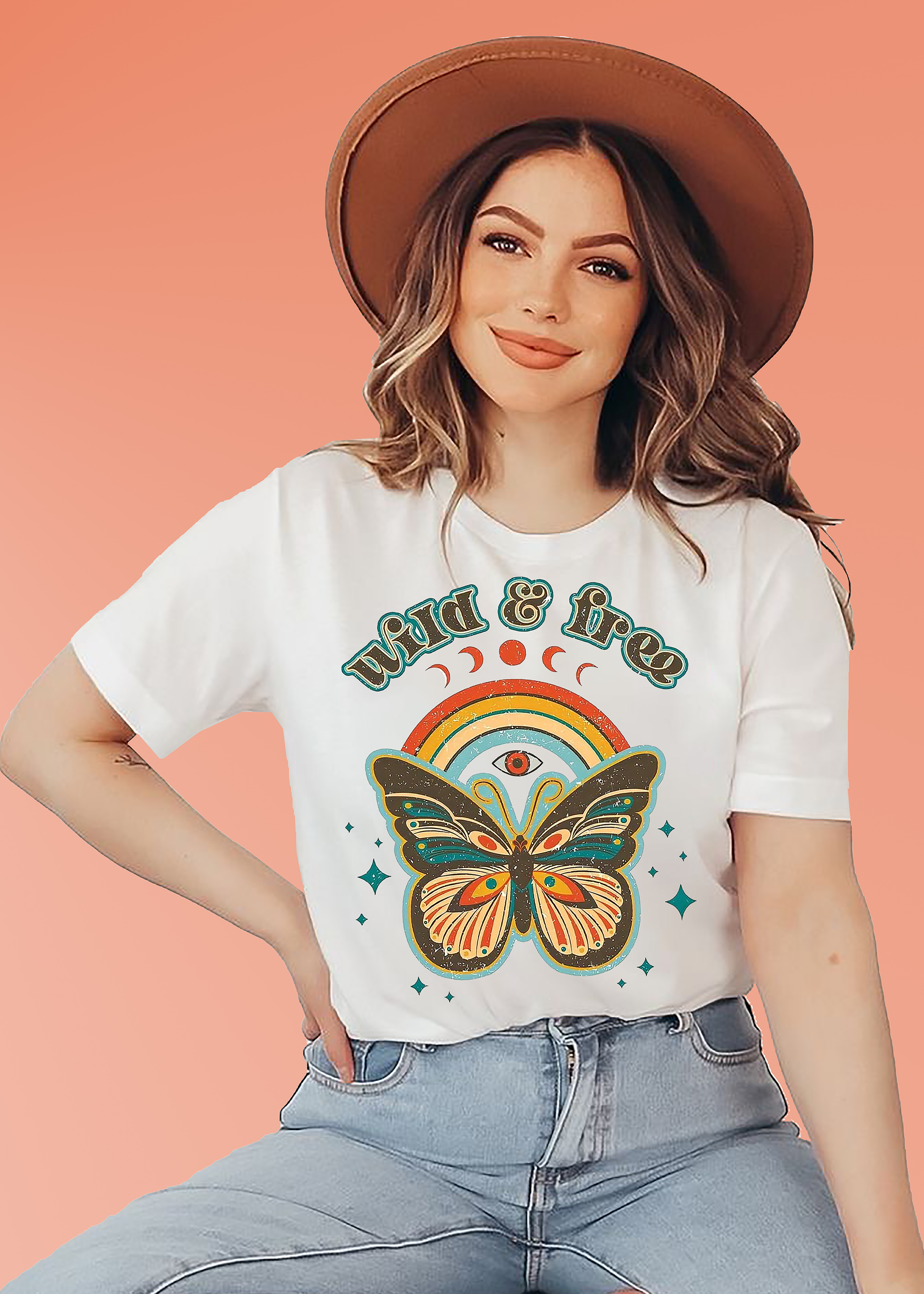 VLAM Womens Wild and Free Butterfly Tshirt